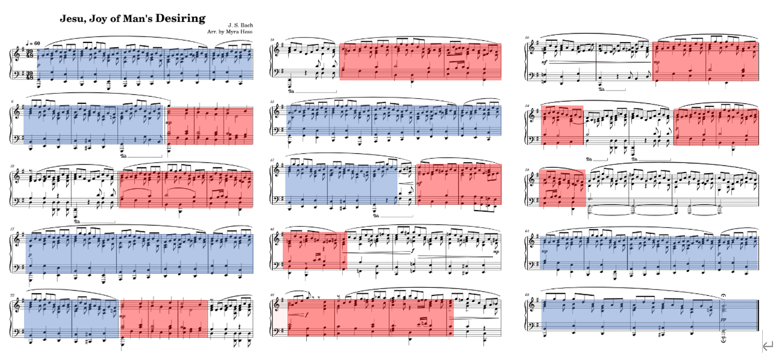 青→ほとんど同じ部分- 赤→合唱を表現している部分