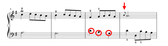2小節目や4小節目の右手は、そこを意識して弾きましょう。