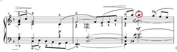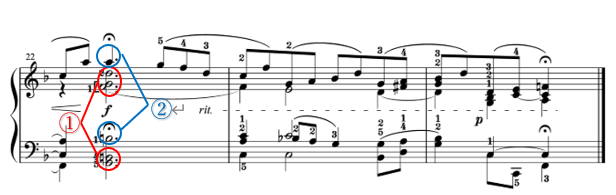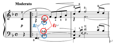また、この旋律は、メロディーより大きい音にならないように注意し、しっかりメロディーを浮き立たせるようにして弾きましょう。