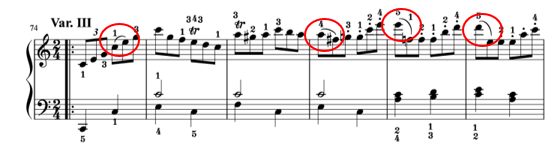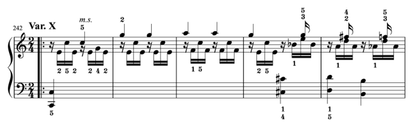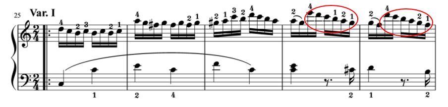 テーマでは、4分音符だったメロディーが、バリエーションに入り16分音符が続きます。