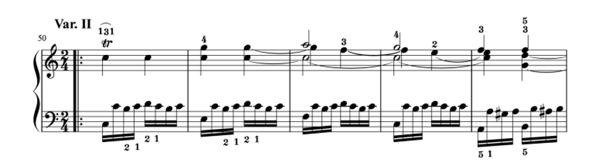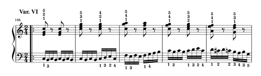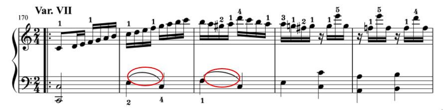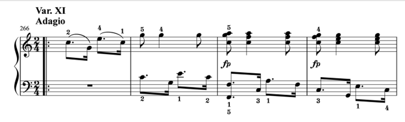 特に弾き方が難しいのは、バリエーション2や6、最後の12です。左手の16分音符が速くて技術的に難しいでしょう。