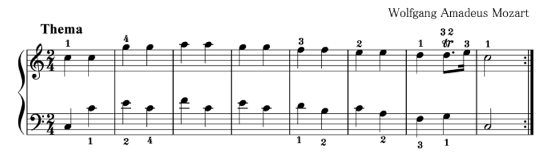 ここまで、『きらきら星変奏曲』について解説してきましたが、ひとつひとつの章は短く、右手と左手の譜割りもわかりやすいものが多かったと思います。